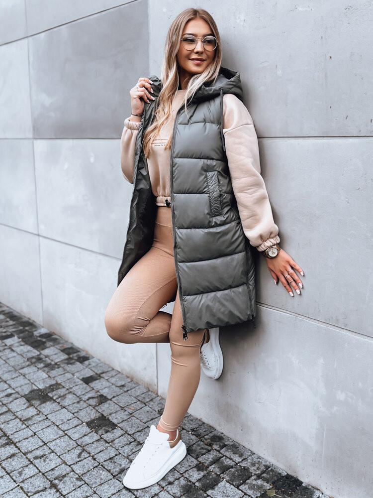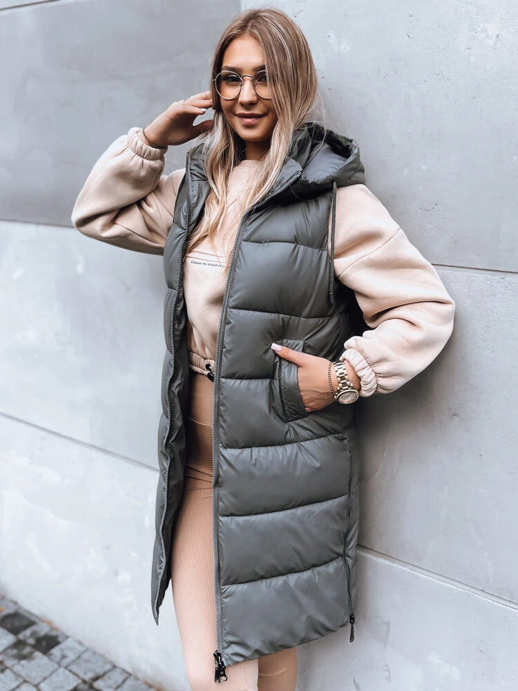 Dámská dlouhá prošívaná vesta FAR AWAY tmavě šedá FashionStreet TY3832