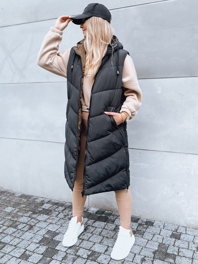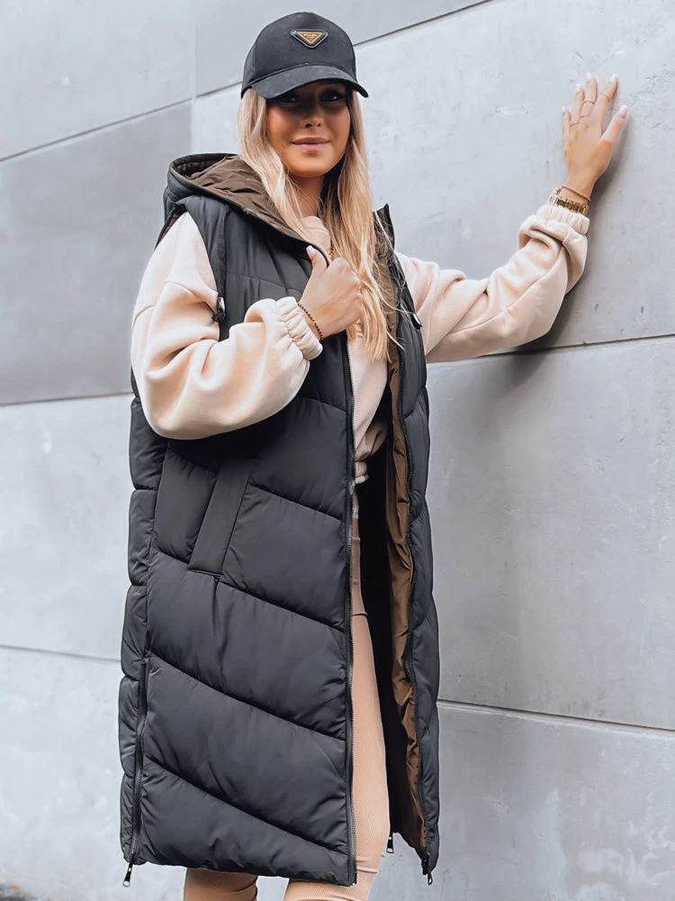Dámská dlouhá prošívaná vesta GERIAT černá FashionStreet TY3838