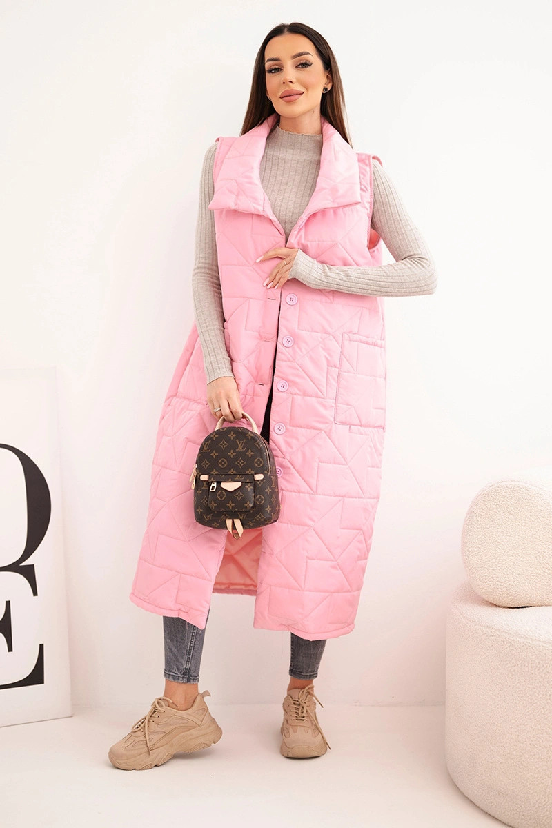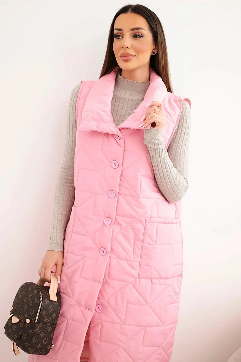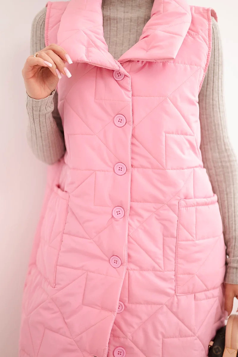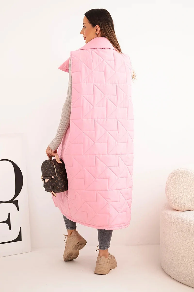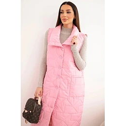 Dámská dlouhá prošívaná vesta s kapsami a stojáčkem světle růžová