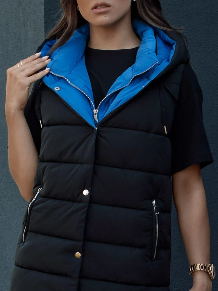 Stylowa, długa kamizelka pikowana, stworzona dla kobiet ceniących modę i wygodę. Lekka, ale bardzo ciepła, doskonała na chłodniejsze dni. Wyposażona w praktyczny kaptur i głębokie kieszenie, zapewnia nie tylko stylowy wygląd, ale także funkcjonalność. Idealna do codziennego noszenia, doskonale komponuje się z różnorodnymi stylizacjami, od casualowych po bardziej sportowe. Dodaj swojej garderobie odrobinę nowoczesnego stylu z tą wyjątkową kamizelką.