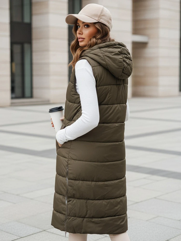 Dámská dlouhá prošívaná zelená vesta Dstreet model 21993367 - FashionStreet