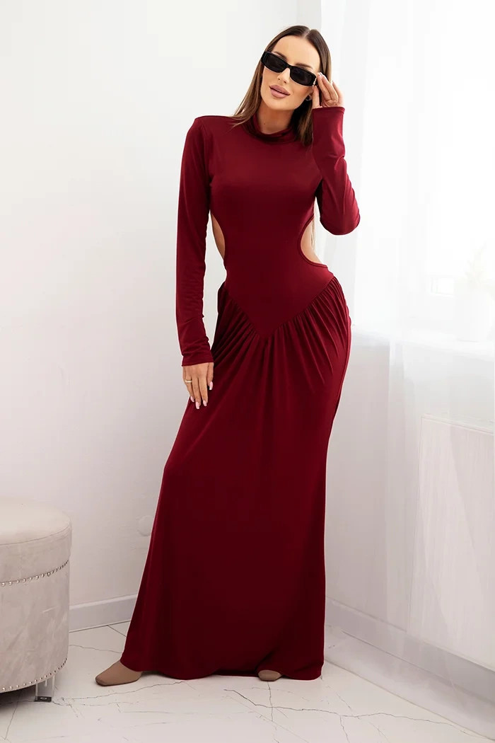 Dámská dlouhá šaty s viskózou a rolákem a odhalenými zády bordová