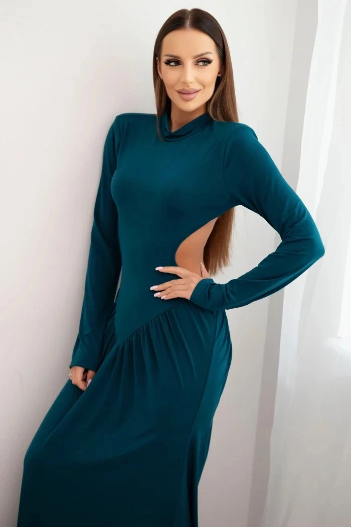 Dámská dlouhá šaty s viskózou a rolákem a odhalenými zády mořská