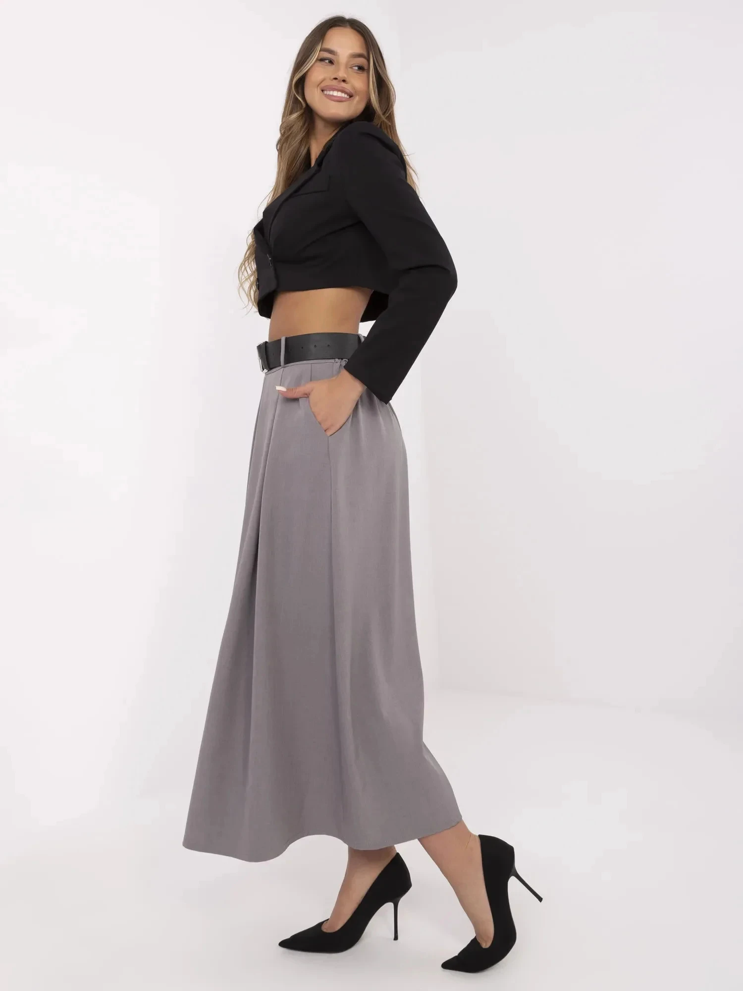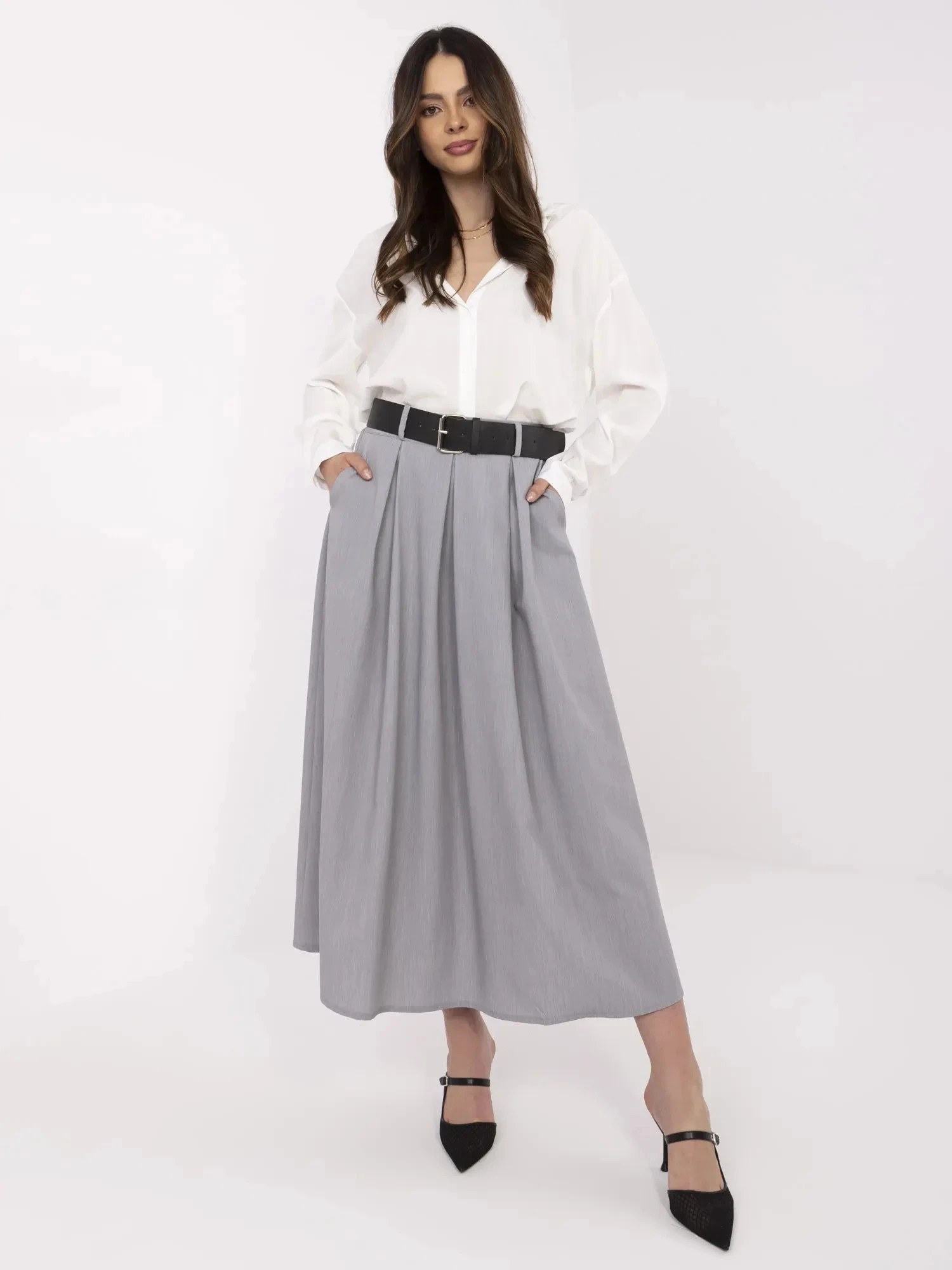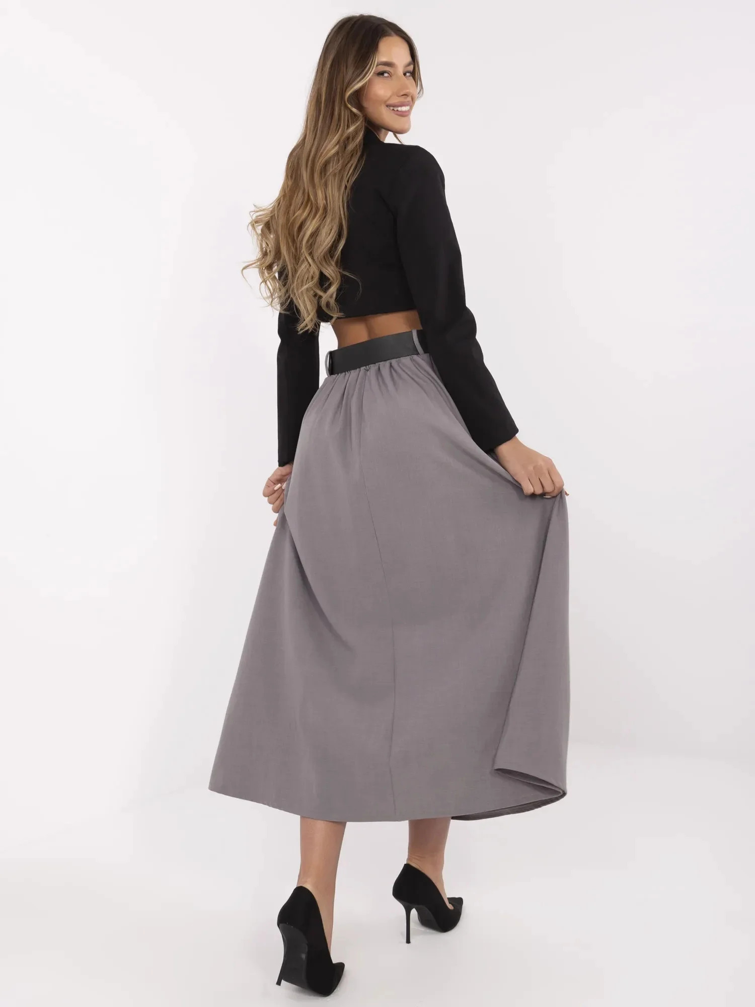 Dámská dlouhá sukně MI SD 88653.89 Šedá - FPrice