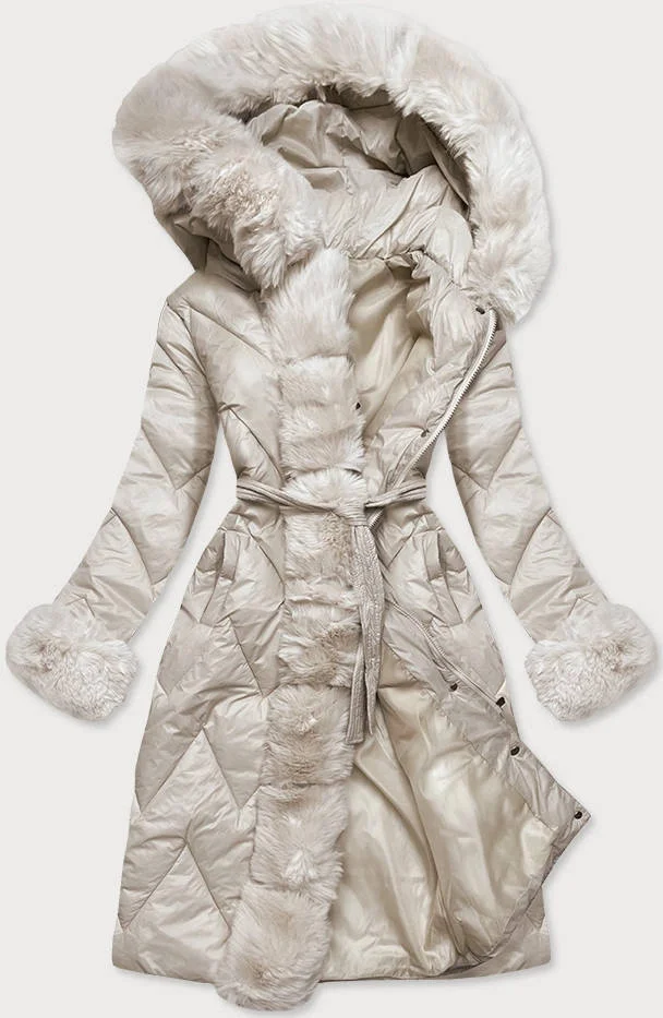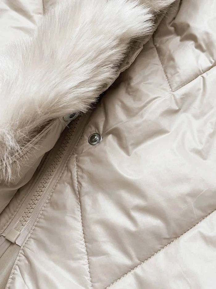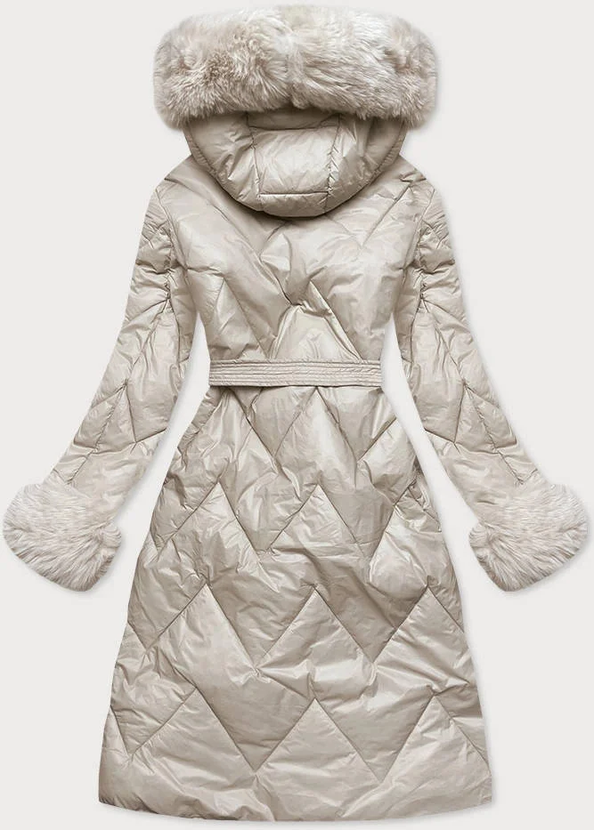 DAMSKA DŁUGA KURTKA PIKOWANA ECRU model 21242978 - WAY MODE