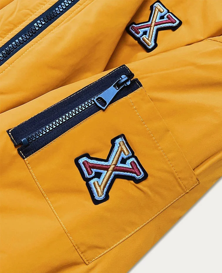 - Z przodu kurtki oraz na kieszeni na ramieniu widnieje ozdobna naszywka