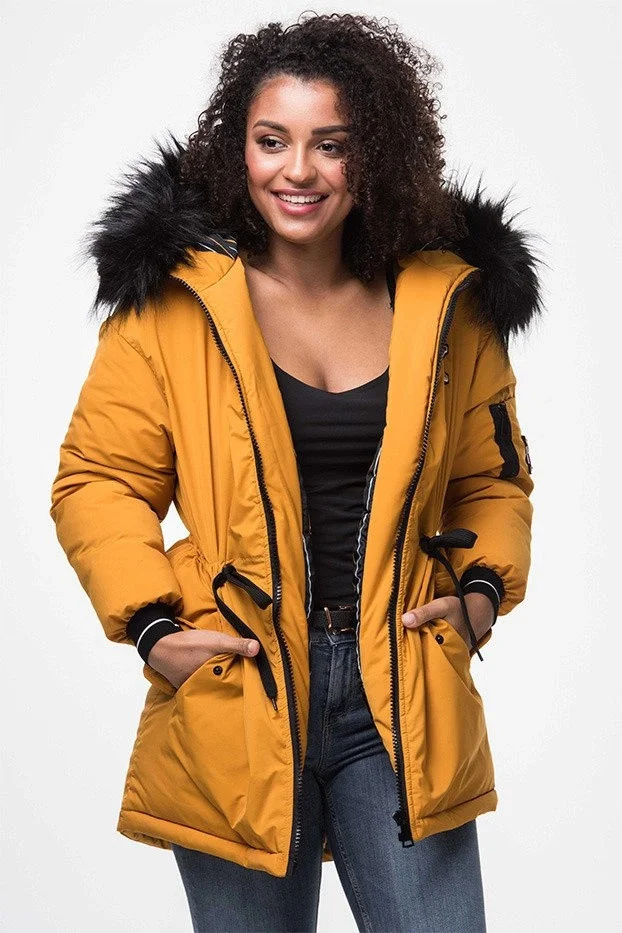 - Posiada stójkę przechodzącą w nieodpinany kaptur z futerkiem