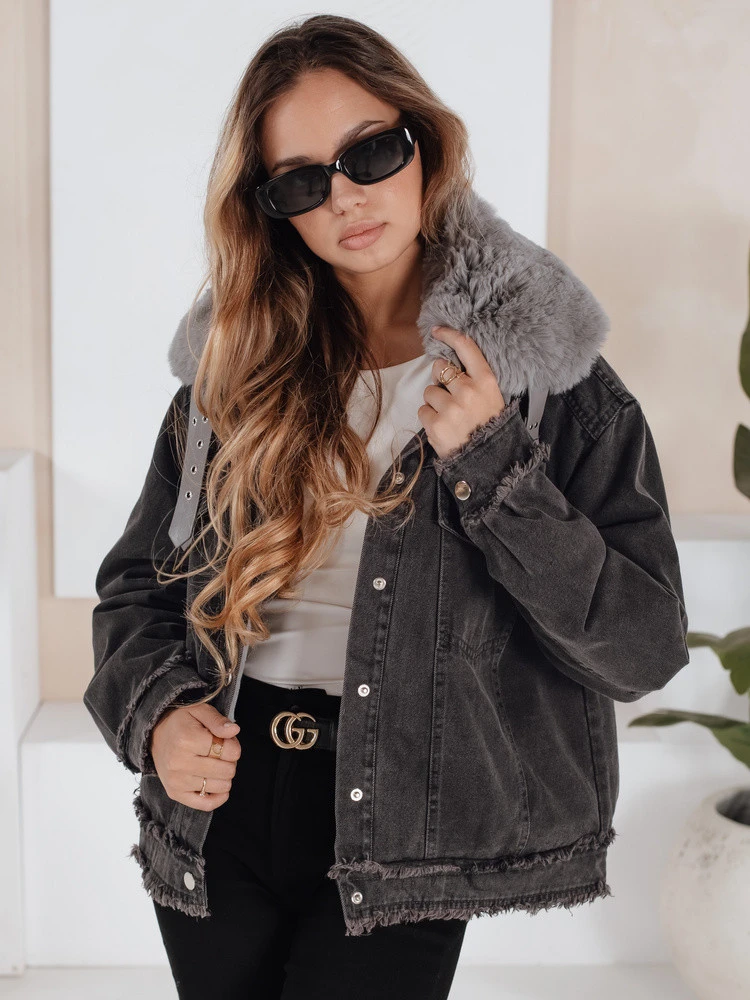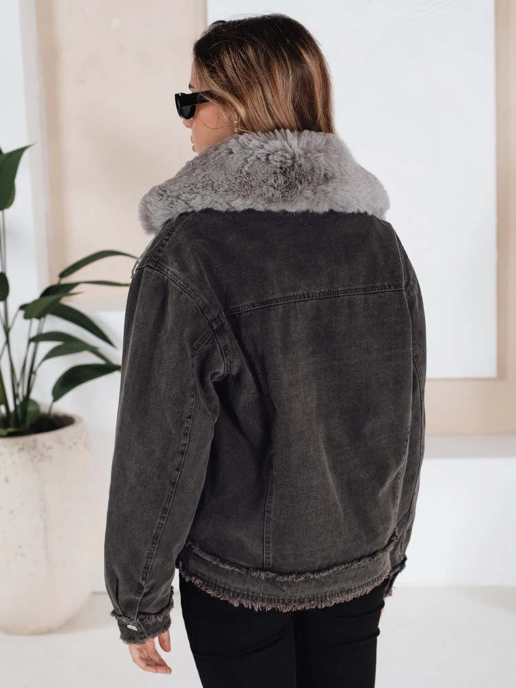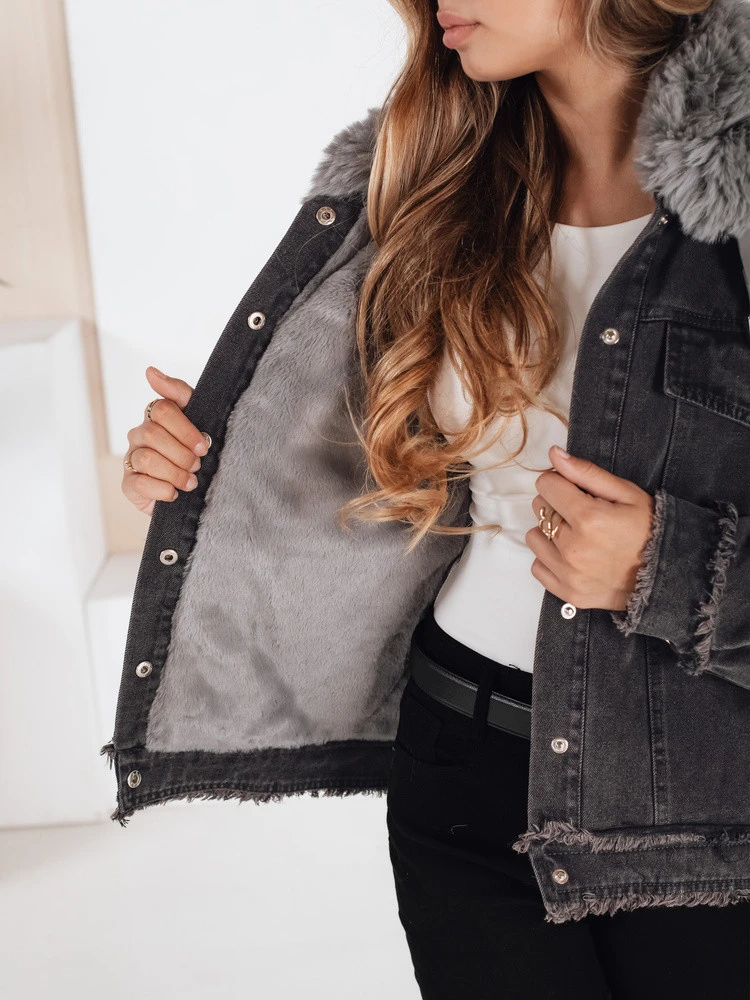 Dámská džínová bunda s kožešinou tmavě šedá Dstreet model 21991812 - FashionStreet