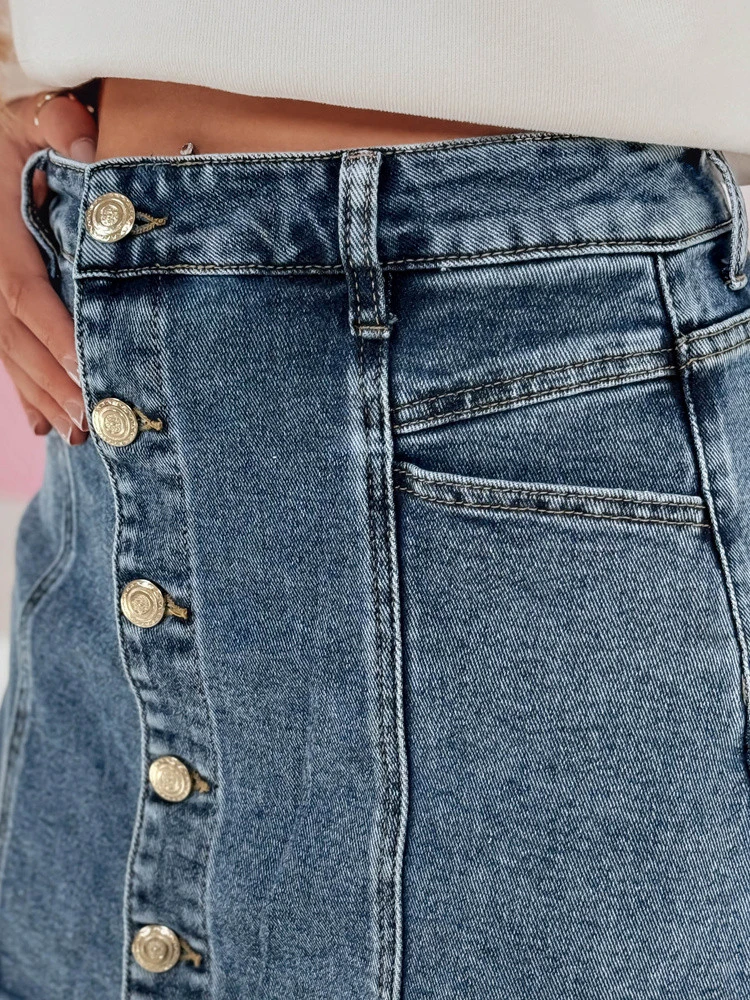 Spódnico-spodenki jeansowe to must-have dla fanek wygody i stylu. Wysoki stan podkreśla talię, jak i optycznie wydłuża nogi, a guziki oraz postrzępione wykończenie dodają ostrego charakteru. Klasyczne kieszenie dodają uroku. Przewiewny jeans sprawia, że są idealne na wiosenne dni. Świetnie pasują do sneakersów i oversize’owych bluz.