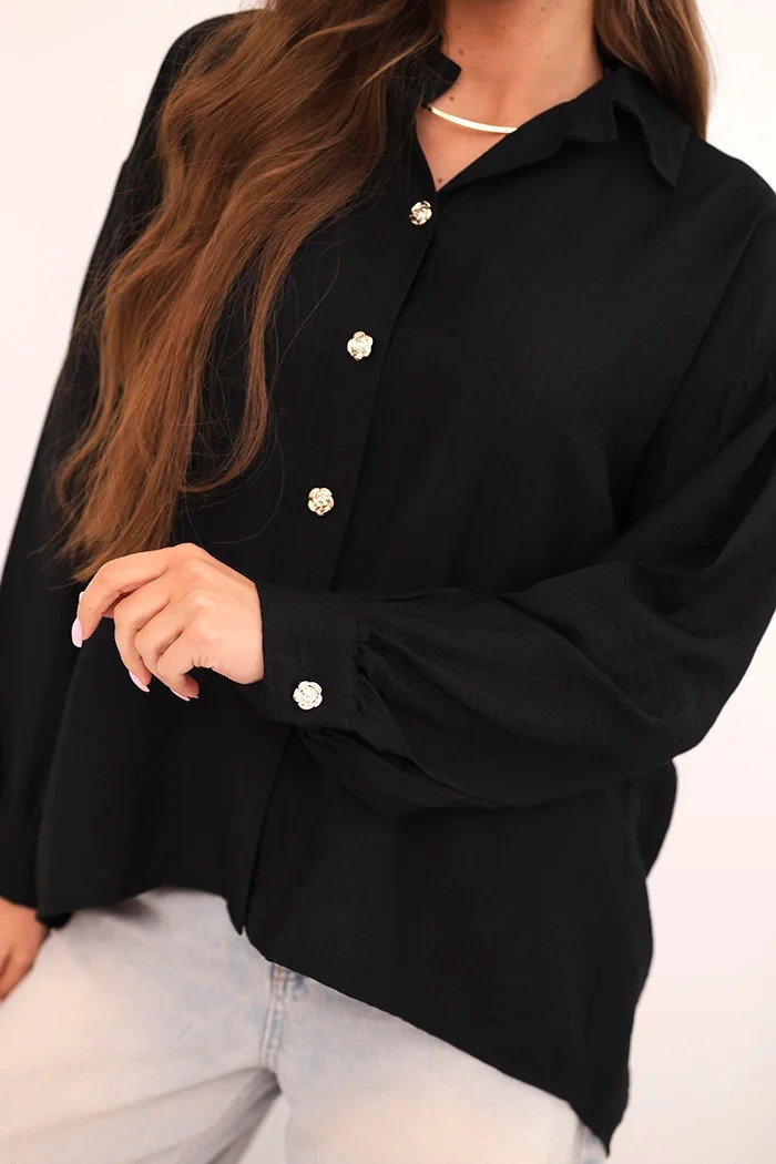 Dámská elegantní košile z viskózy s ozdobnými knoflíky černá