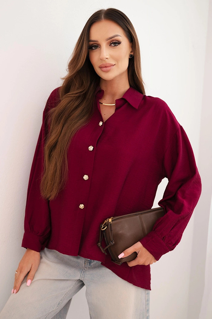 3. Dámská elegantní košile z viskózy s ozdobnými knoflíky švestková