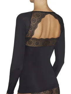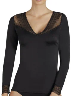 Dámský top - tričko s květinovými rukávy dlouhý rukáv černobílé - Černo-bílá / UNI - OEM529