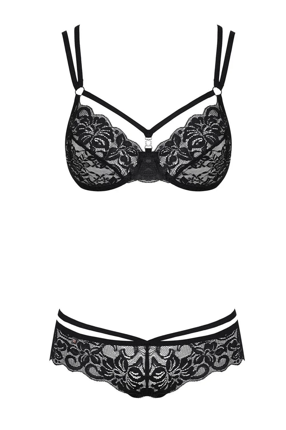 Dámská erotická souprava 860-SET black OBSESSIVE - černá barva - krajka s motivem růží - elastické pásky zdobí oba díly sady - podprsenka s nastavitelným zapínáním - čtyři nastavitelné pásky - lesklé šperky a ozdobné kroužky - set obsahuje podprsenku a tanga - měkká a elastická tkaninaMateriálové složení: 90% polyamid + 10% elastan