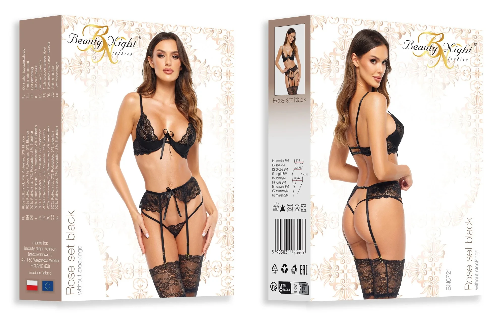 Produkt Dámská erotická souprava Rose set black - BEAUTY NIGHT FASHION prodáváme v těchto velikostech: L/XLa barvách černá5903031783414