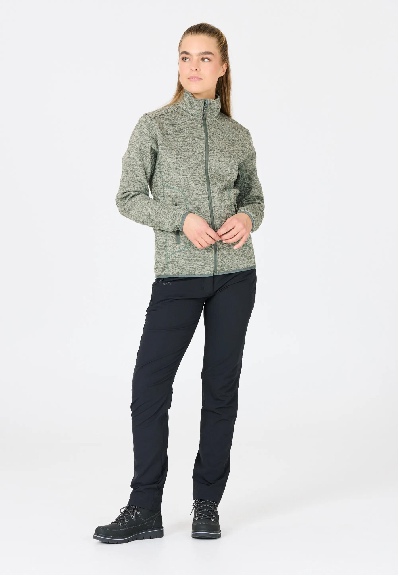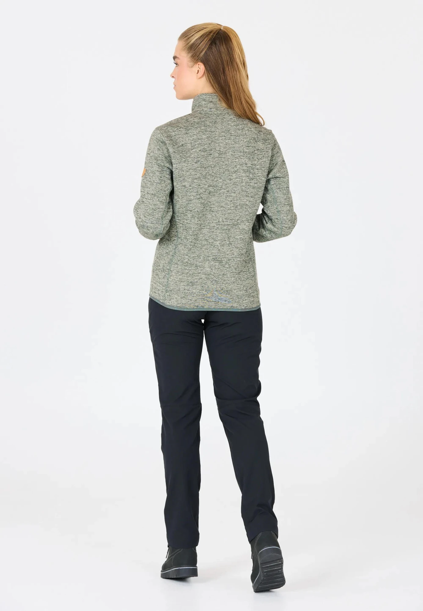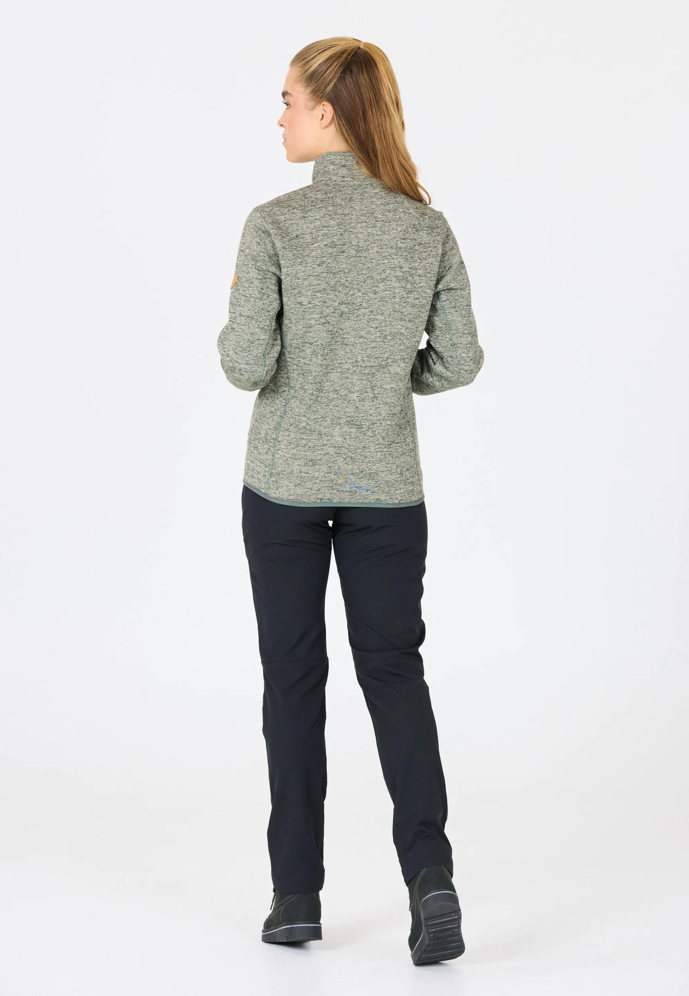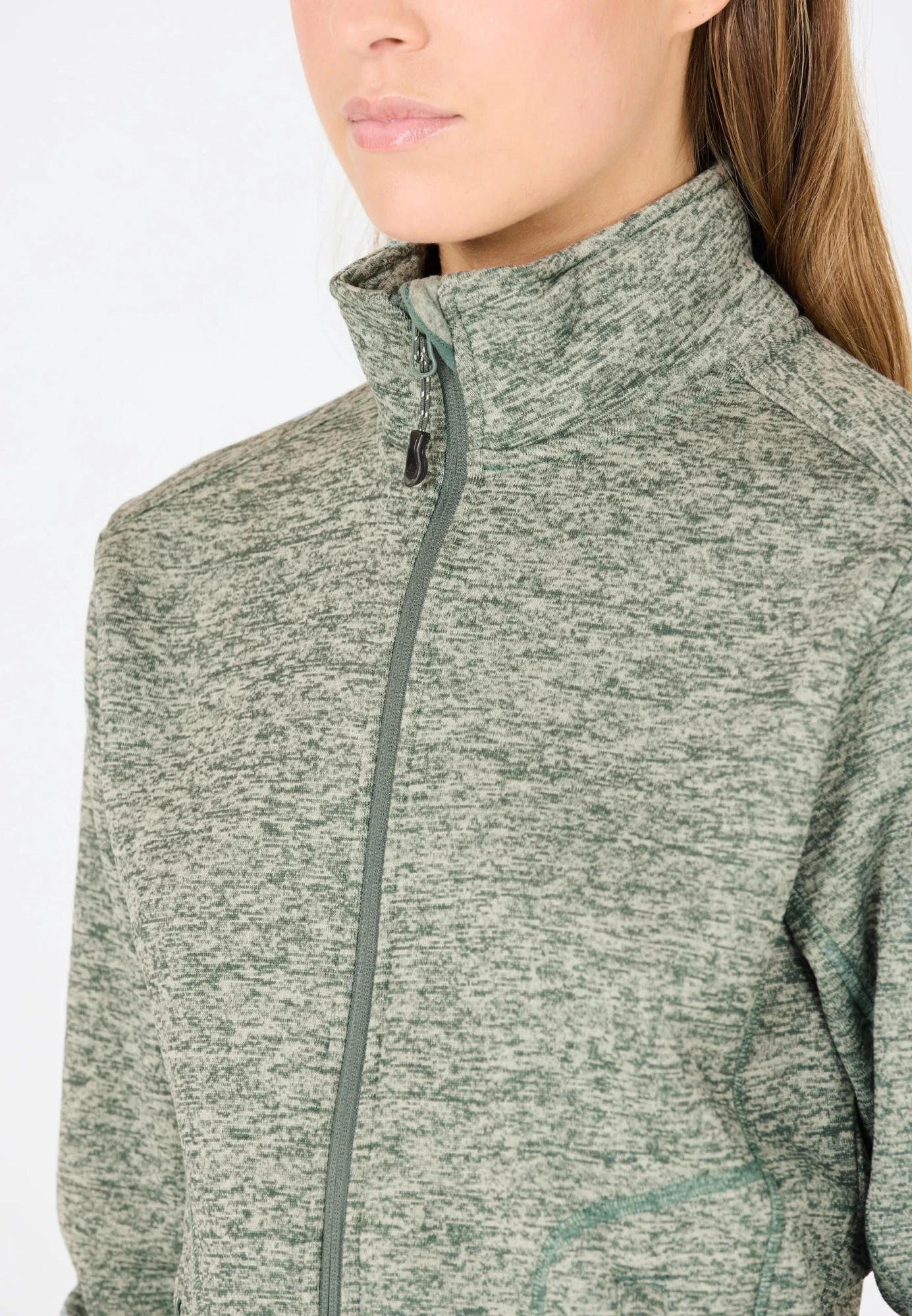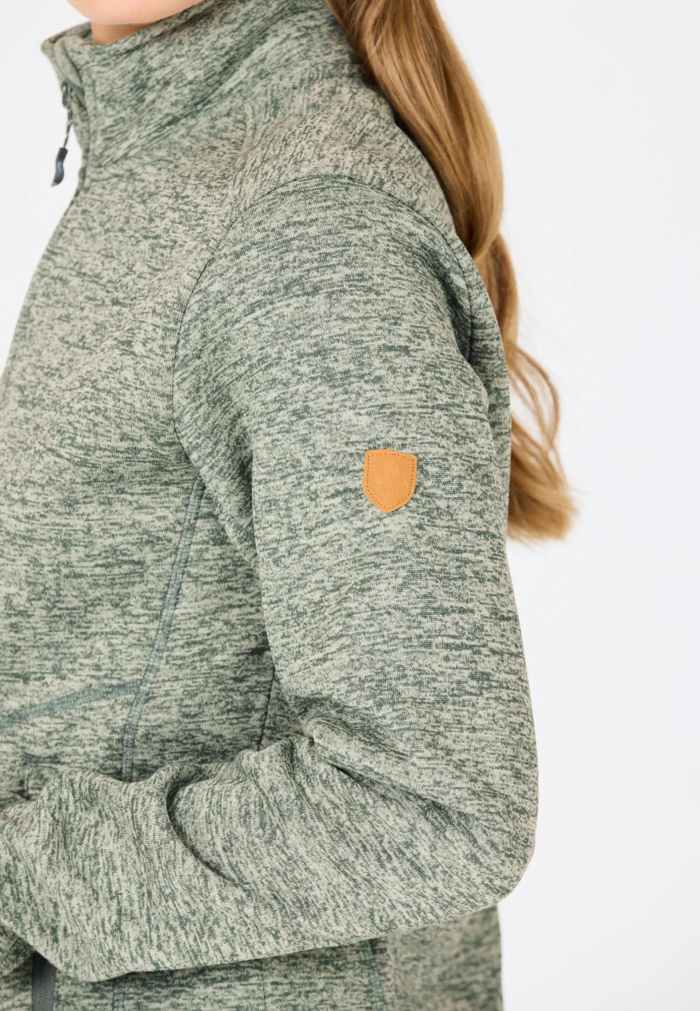 Měkký melírovaný fleece z polyesteru poskytuje lehký tepelný komfort, je prodyšný a rychleschnoucí, takže se hodí jak pro každodenní nošení, tak i pro aktivní pohyb.
