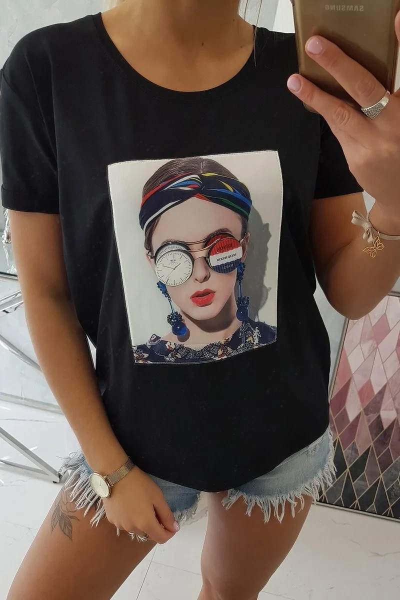 Přidání recenze k Dámská grafická halenka černá