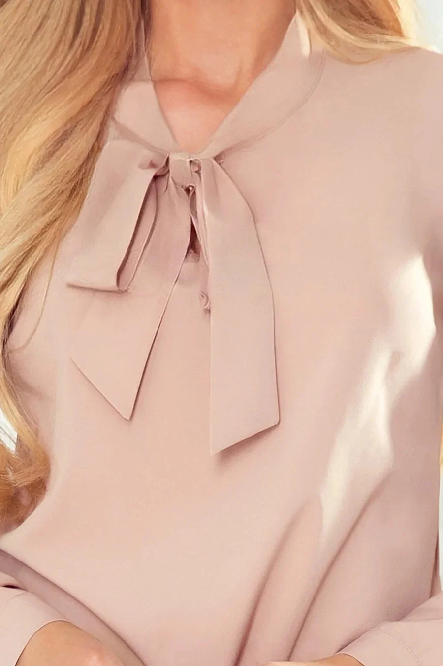 Dámská halenka 140-16 NUMOCO - béžová barva - je ušitá z příjemného materiálu - s dlouhými rukávy - se zavazováním ve výstřihu
