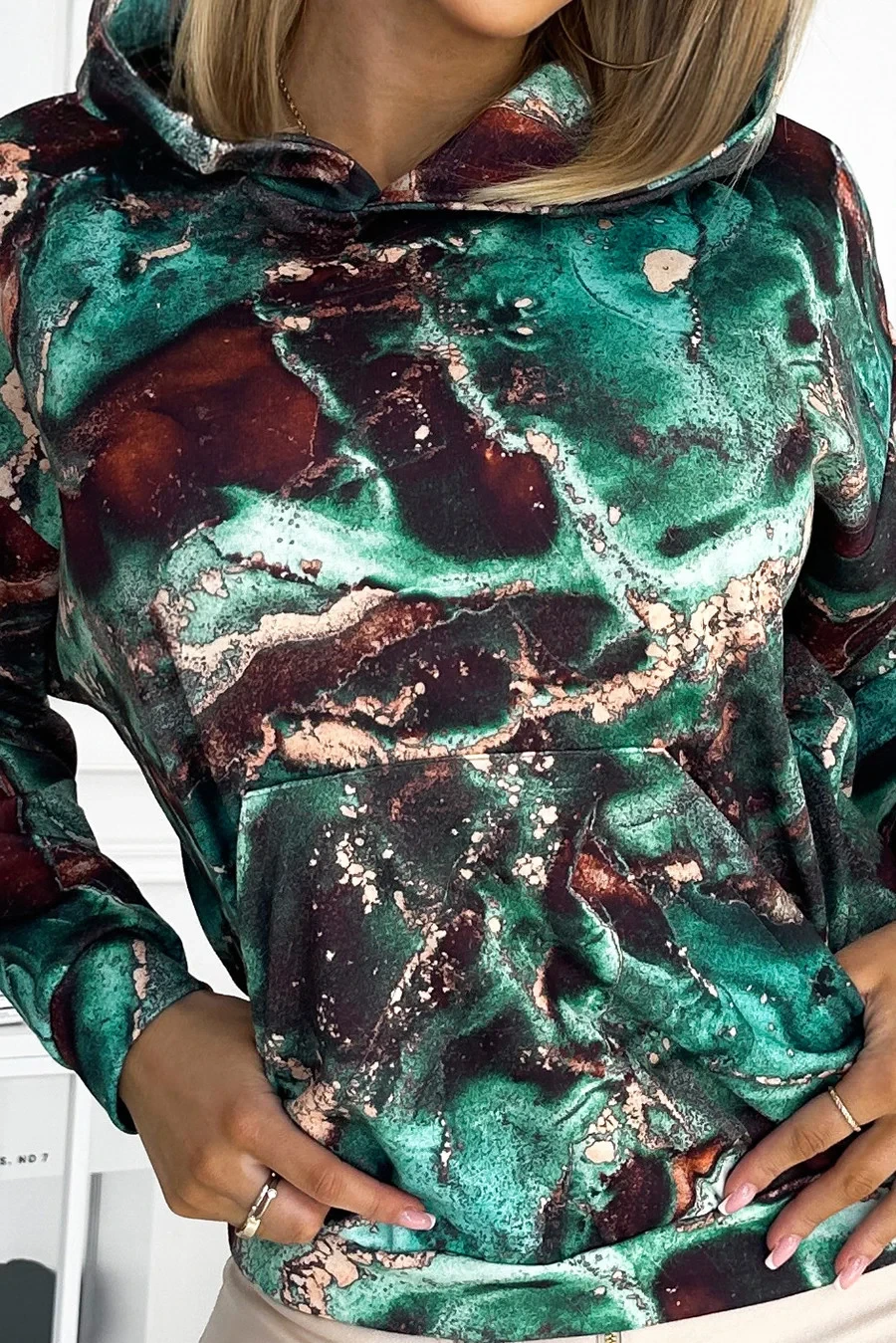 Dámská halenka 390-2 NUMOCO - vícebarevná barva - klokanka s kapucí - dlouhé rukávy - ze zatepleného a lehce elastického materiálu