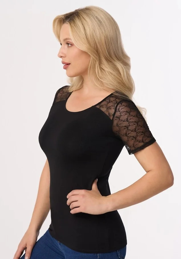 - rukávy a ramena ze vzorované síťoviny