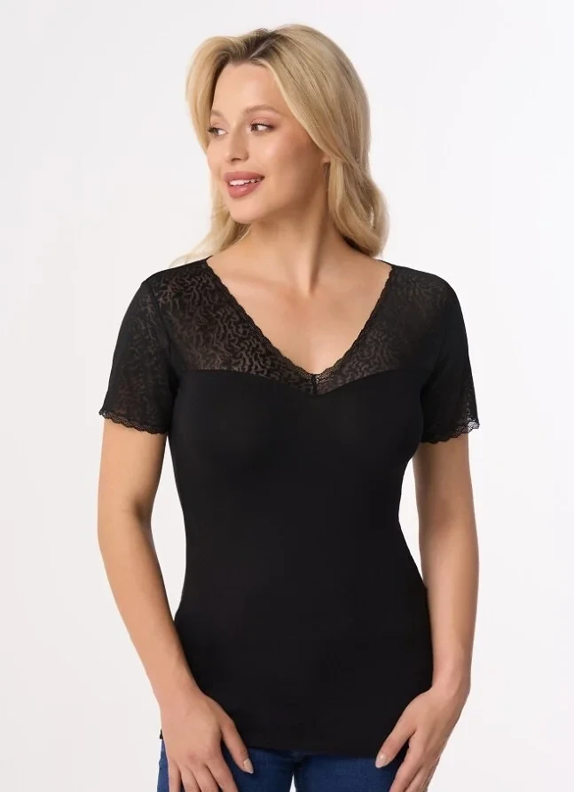 - výstřih a rukávy z jemné krajky