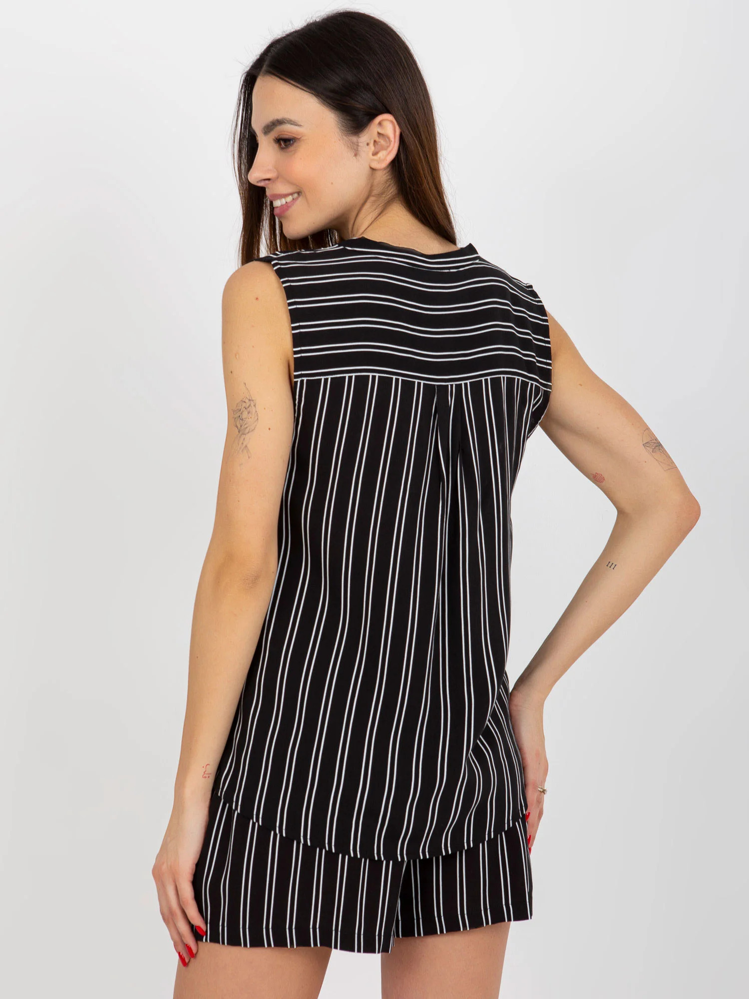 Černá dámská pruhovaná halenka bez rukávů FRESH MADE .