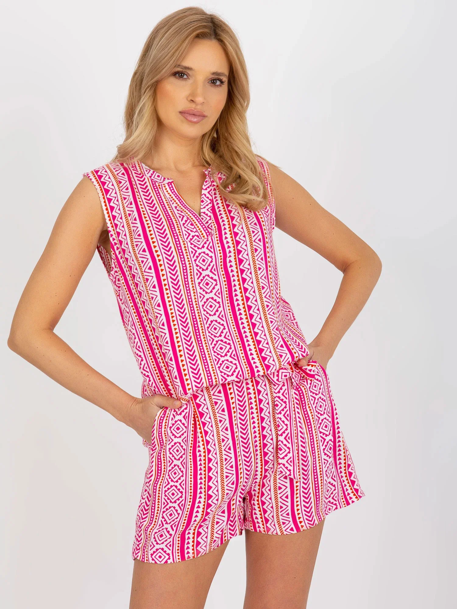 Růžová květinová halenka bez rukávů FRESH MADE .
