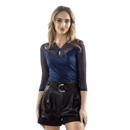 Dámská halenka Danita dark blue ELDAR - tmavě modrá barva - z vysoce kvalitní viskózy - výstřih a rukávy ze síťoviny a krajky - 3/4 rukáv