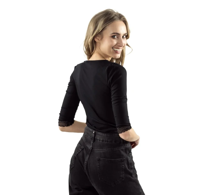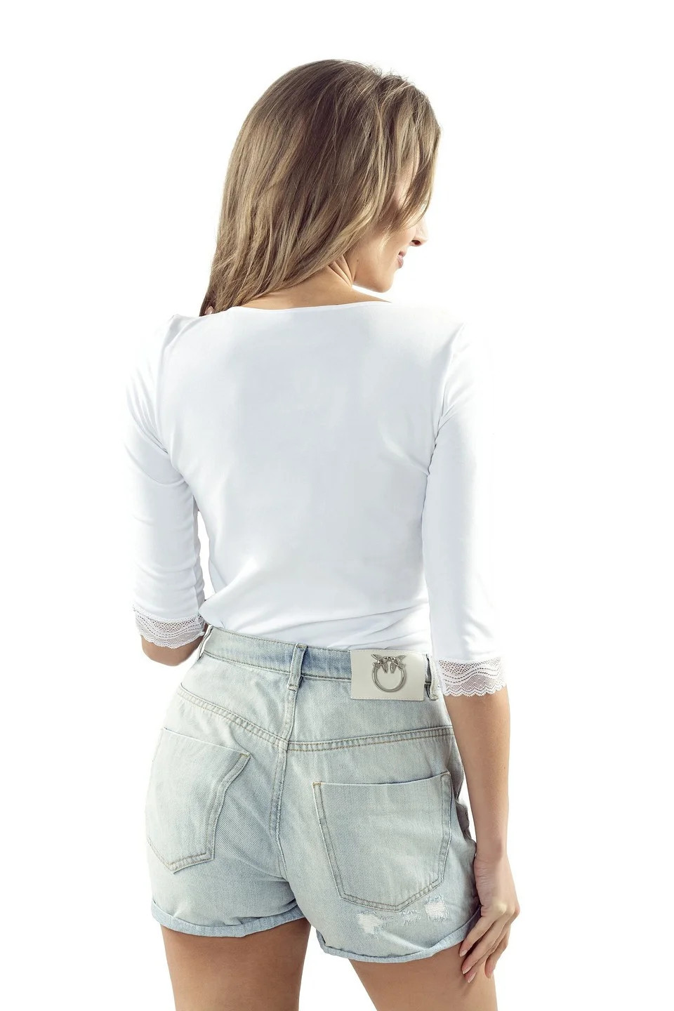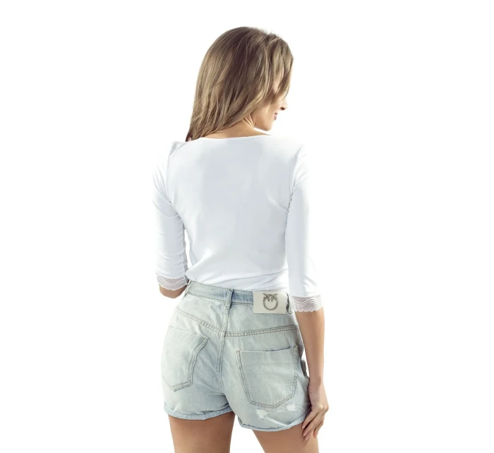 - horní linie nad poprsím a rukávy zdobené krajkou
