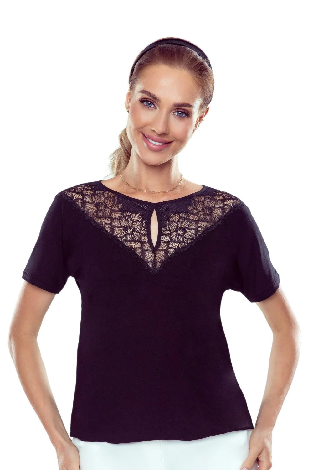 Dámská halenka Filippa Eldar - z kvalitní viskózy příjemné na dotyk - krátké rukávy - horní část z ažurové krajky