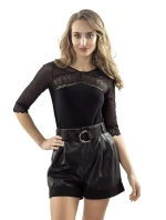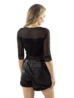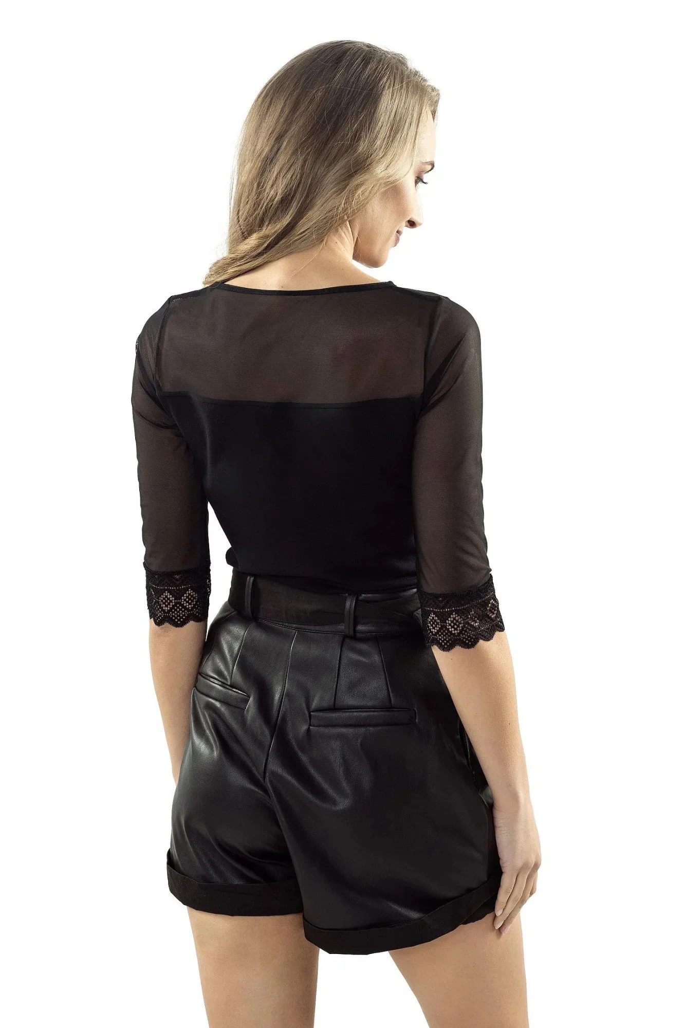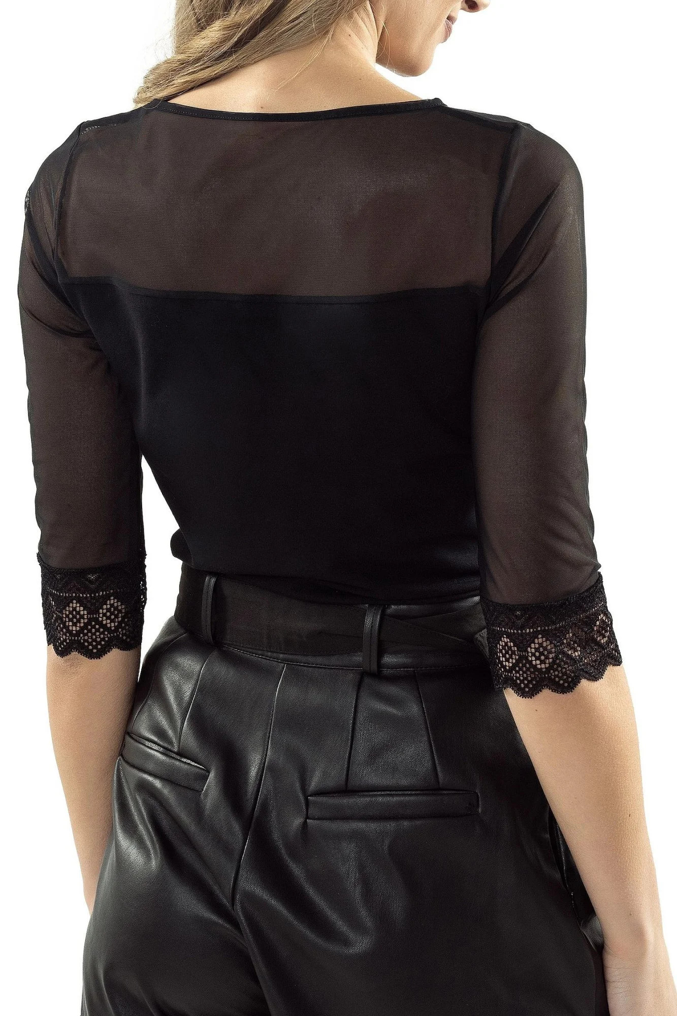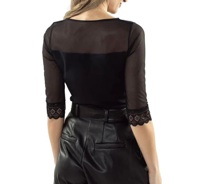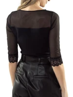 Dámská halenka Freya ELDAR - černá barva - z vysoce kvalitní viskózy a tylu - zdobená krajkou - 3/4 rukáv