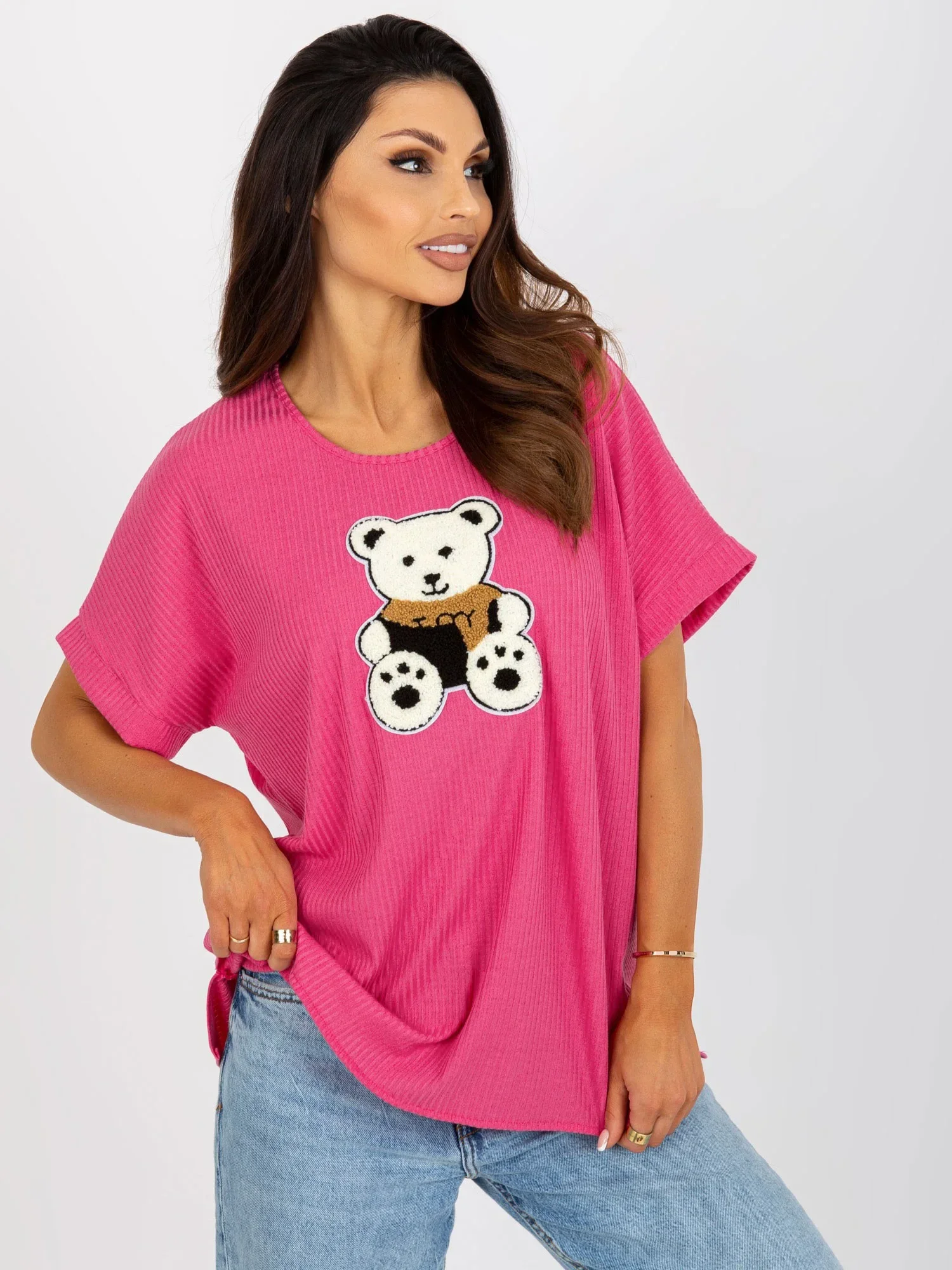 Fuchsiová oversize halenka s pruhovaným plyšovým .
