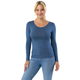 Dámská halenka Manati long denim BABELL - denim barva - z měkké viskózy s přídavkem elastanu - kulatý výstřih - dlouhé rukávy - příjemný materiál - jednoduchý design