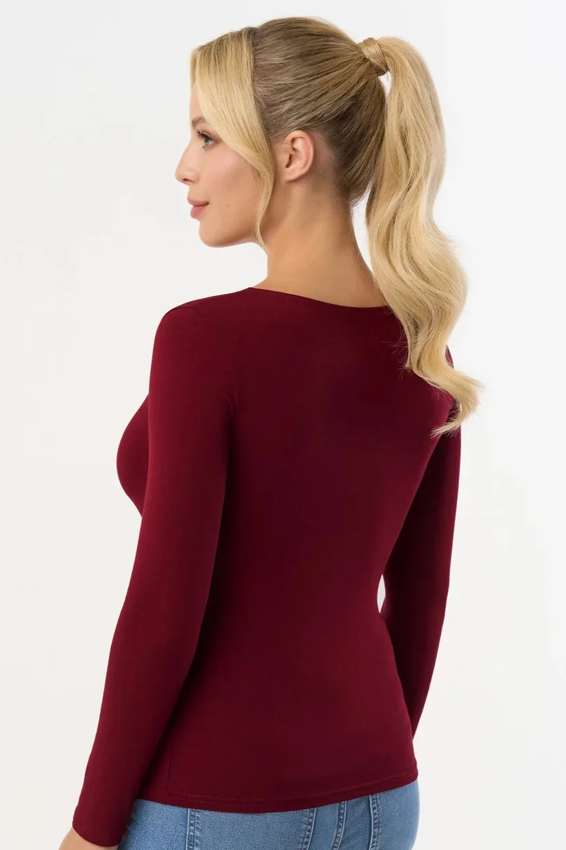 Dámské viskózové tričko s dlouhými rukávy, pókulatý výstřih.