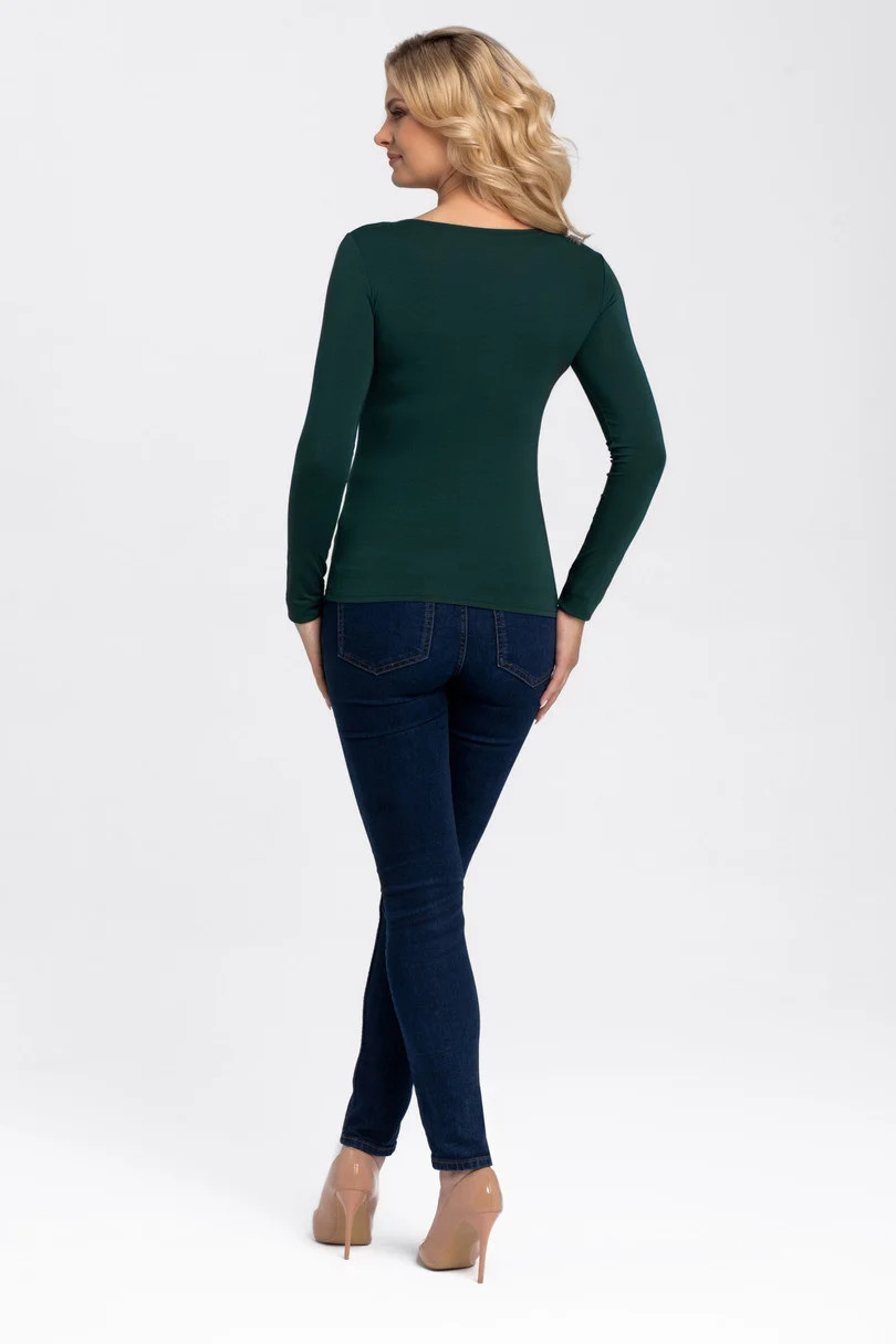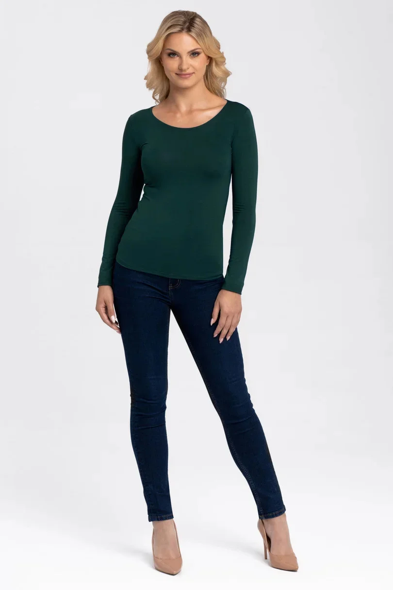 Dámské tričko z viskózy s elastanem pro dokonalé přizpůsobení. Kulatý výstřih, dlouhý rukáv.