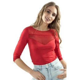 Dámské bavlněné tričko s 3/4 rukávy, výstřih lemovaný tylem.
