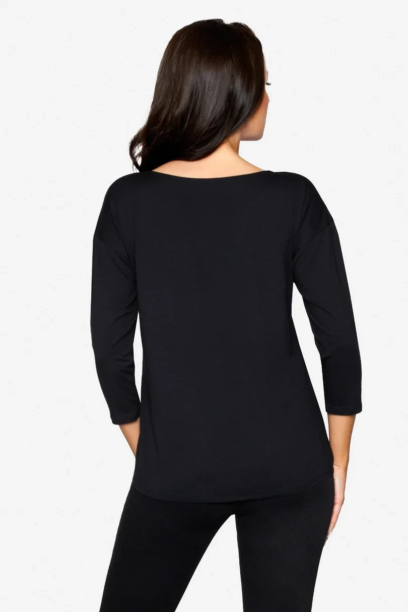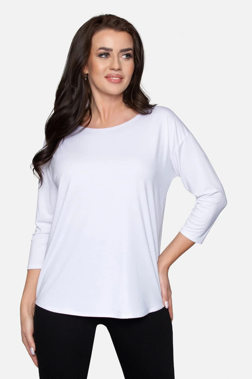 Dámská viskózová halenka s 3/4 rukávy, kulatým výstřihem.