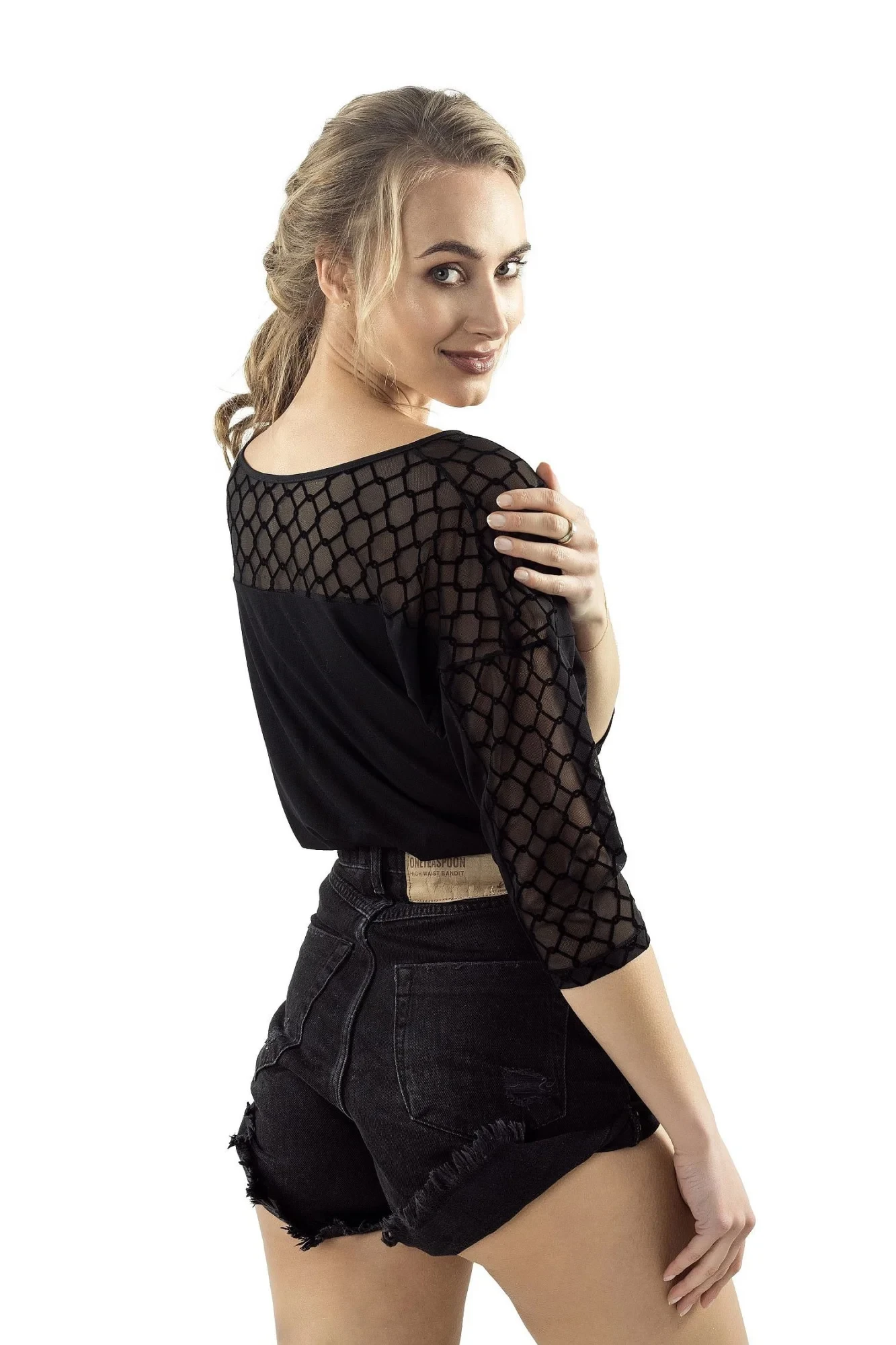 Dámská halenka Orea ELDAR - černá barva - z vysoce kvalitní viskózy - výstřih a rukávy z ozdobné síťoviny - 3/4 rukáv