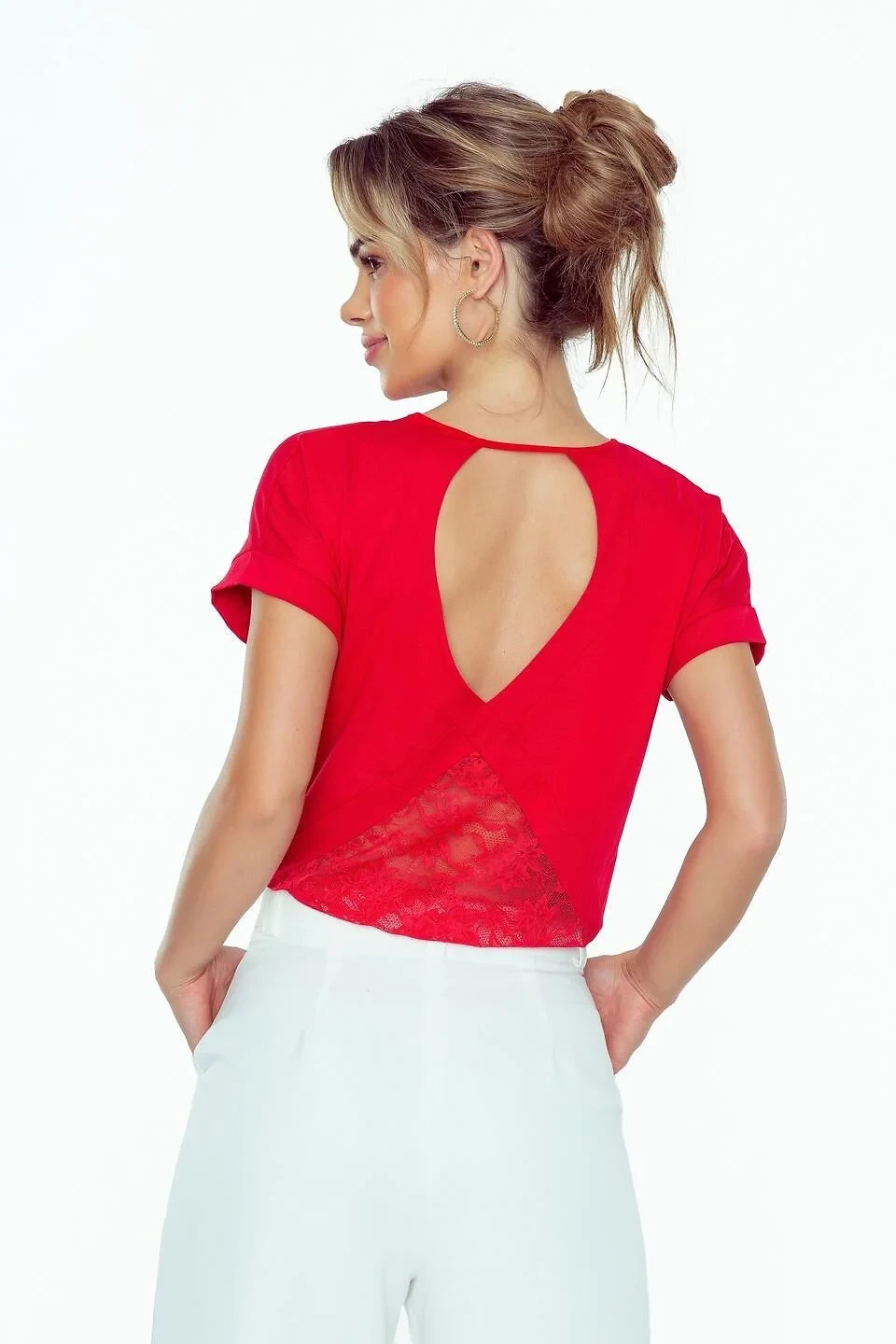 - zadní díl s nápadným výřezem a krajkovou vsadkou