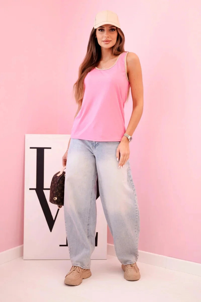 Dámská halenka na ramínka s ozdobným lemem světle růžová