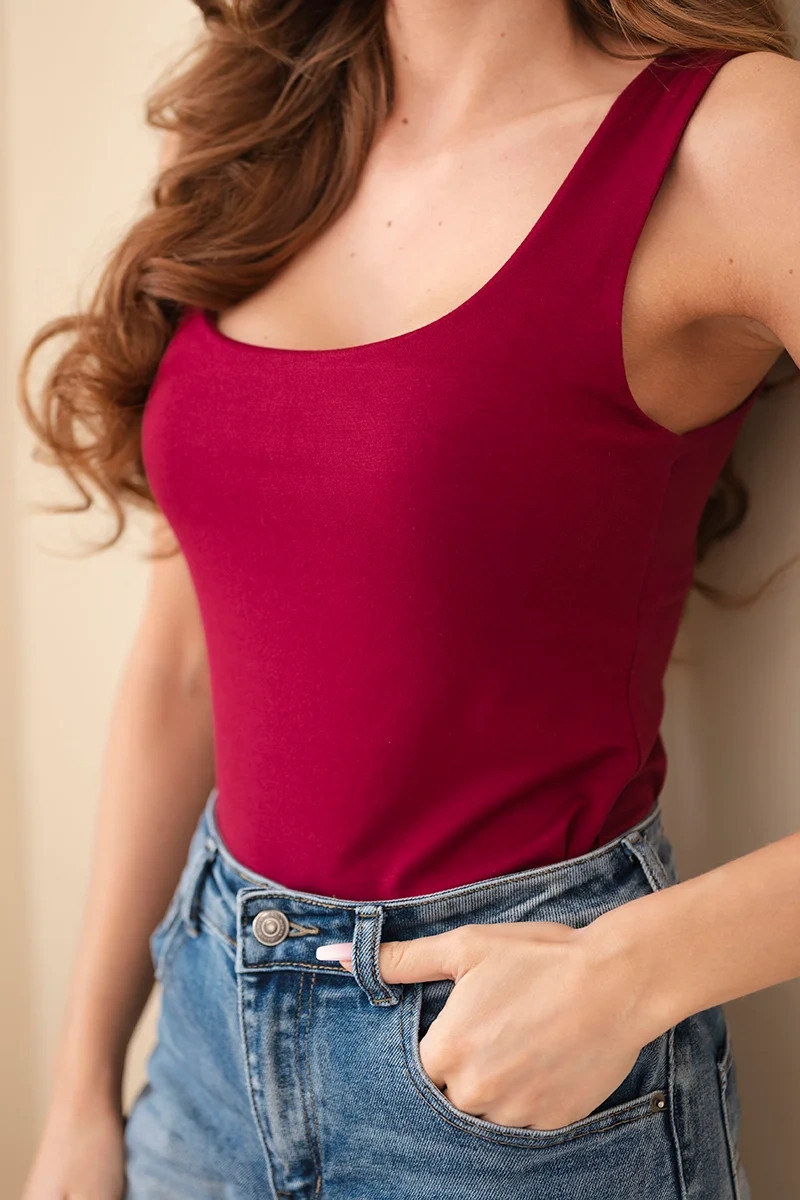 Přidání recenze k Dámská halenka na ramínka s výstřihem světle bordó