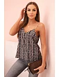 Dámská halenka na ramínkách s řetízkem a geometrickým vzorem fango + černá