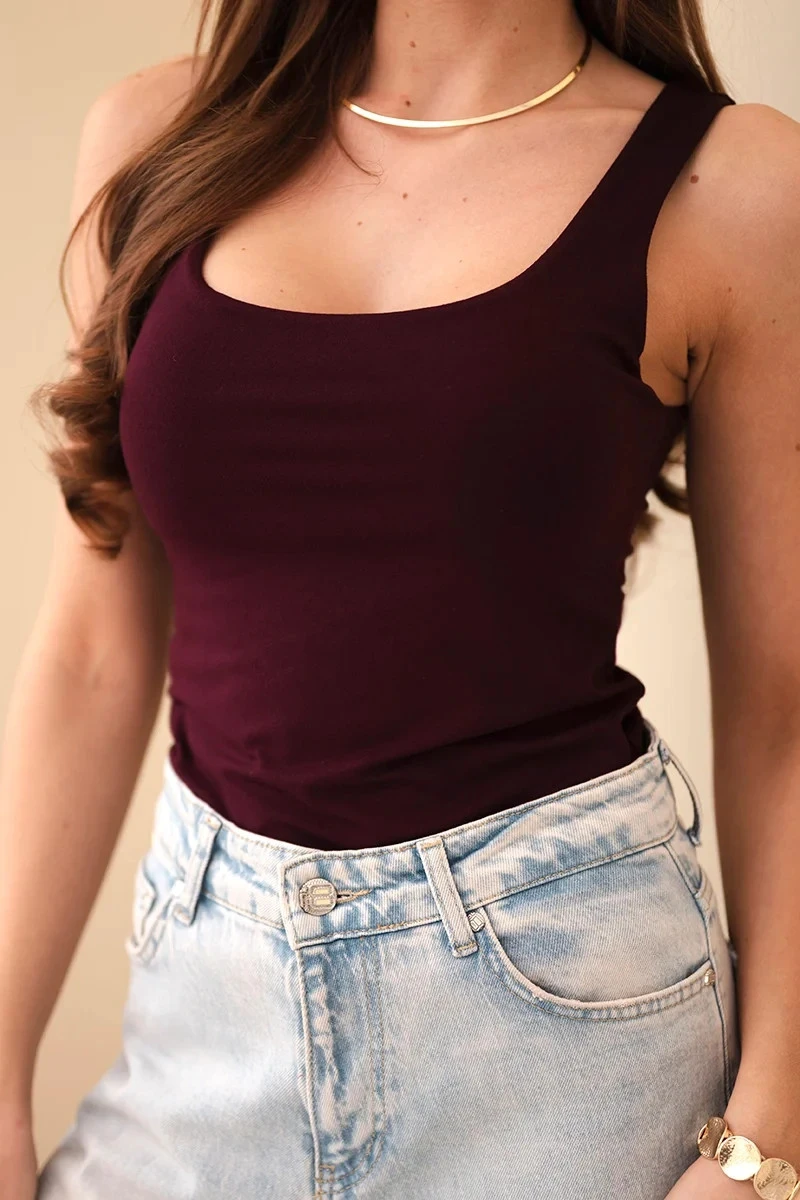 Dámská halenka na ramínkách s výstřihem bordó