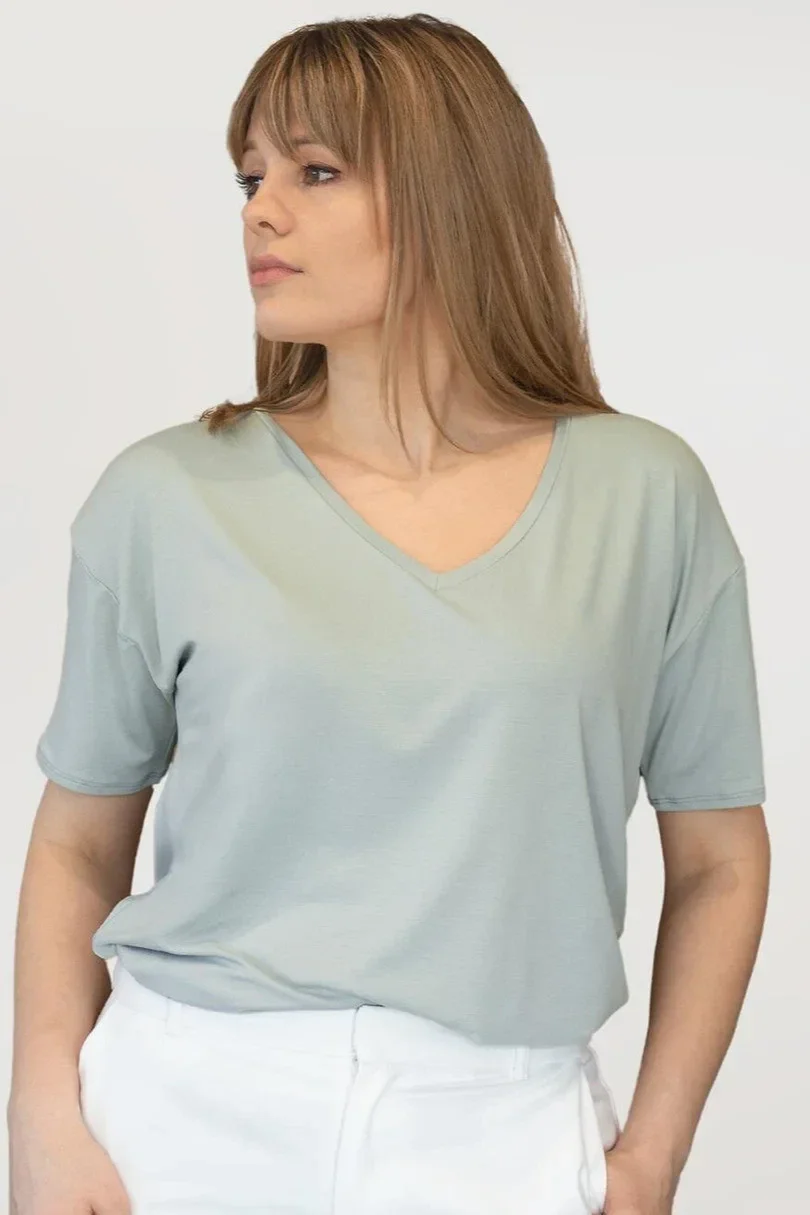 Bluzka damska PATTY to kwintesencja wygody i eleganckiego minimalizmu. Luźny fason z krótkim rękawem i dekoltem w serek doskonale układa się na sylwetce, zapewniając maksymalny komfort noszenia. Wykonana z miękkiej wiskozy (94%) z dodatkiem elastanu (6%), jest przewiewna, elastyczna i przyjemna w dotyku. Gładka faktura materiału sprawia, że świetnie komponuje się zarówno ze spodniami, jak i spódnicą, nadając stylizacji lekkości i nowoczesnego charakteru. Idealna na co dzień, do pracy i na spotkania ze znajomymi!
