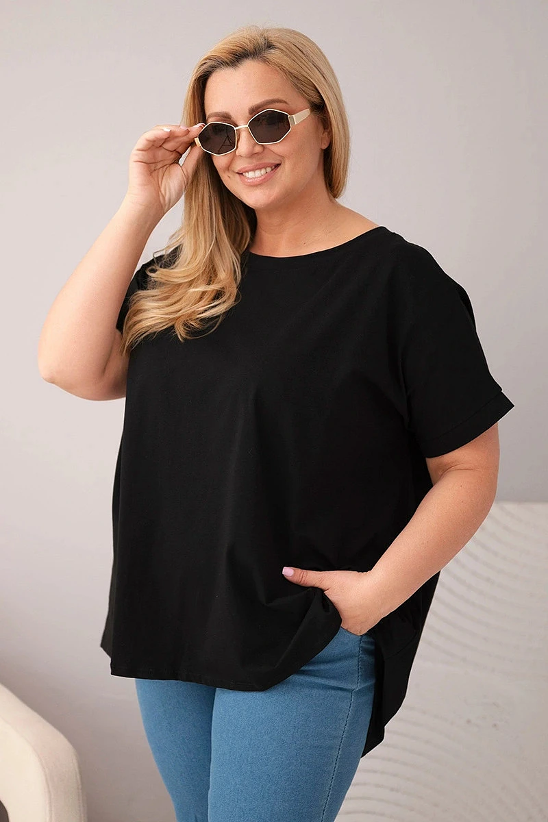 Dámská halenka Plus Size bavlněná s krátkým rukávem černá