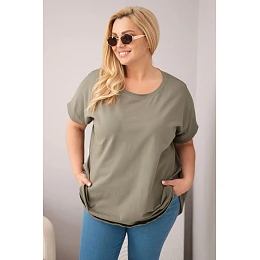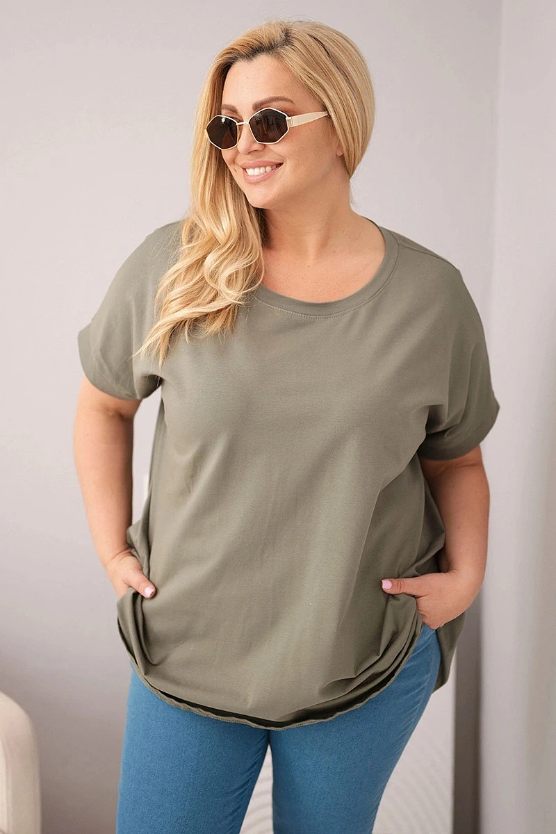 Dámská halenka Plus Size bavlněná s krátkým rukávem khaki