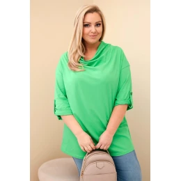 Dámská halenka Plus Size s bavlnou volného střihu s vodním výstřihem světle zelená