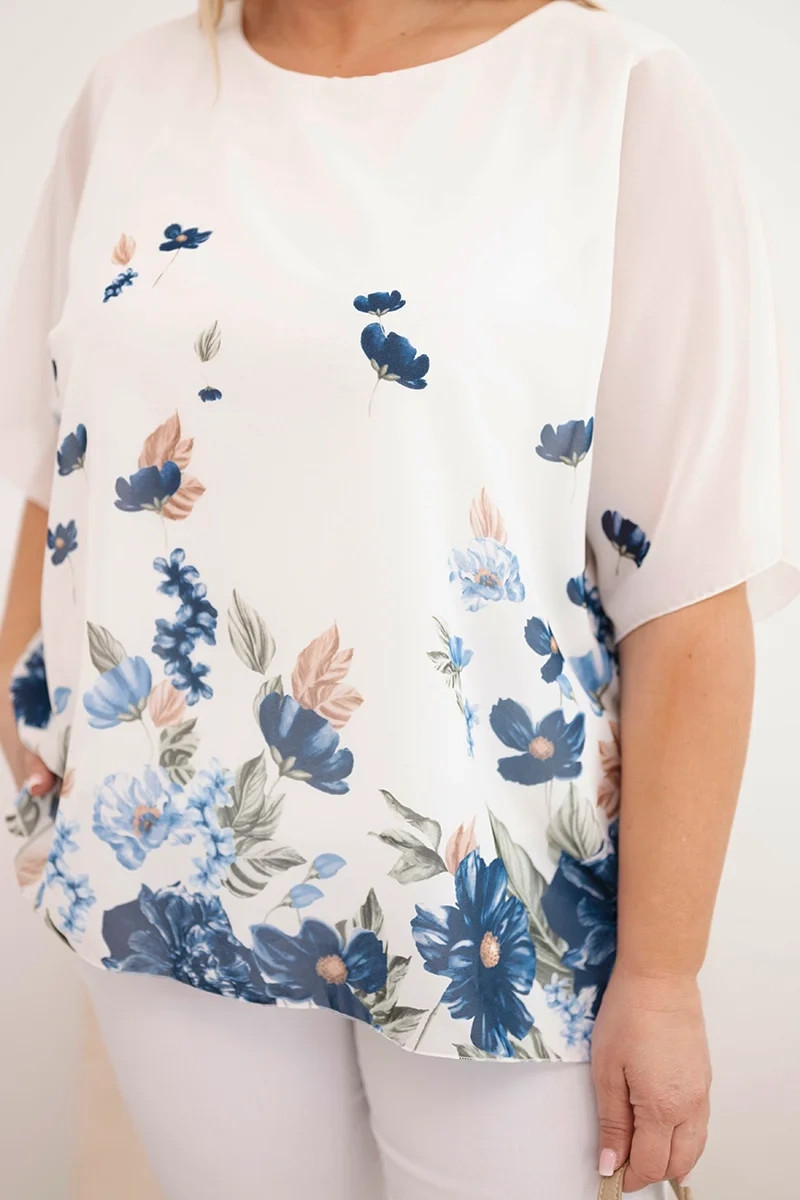 Dámská halenka Plus Size s krátkým rukávem a květinovým potiskem model 22069965 - K-Fashion