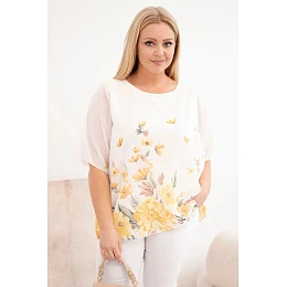 Dámská halenka Plus Size s krátkým rukávem a květinovým potiskem žlutá