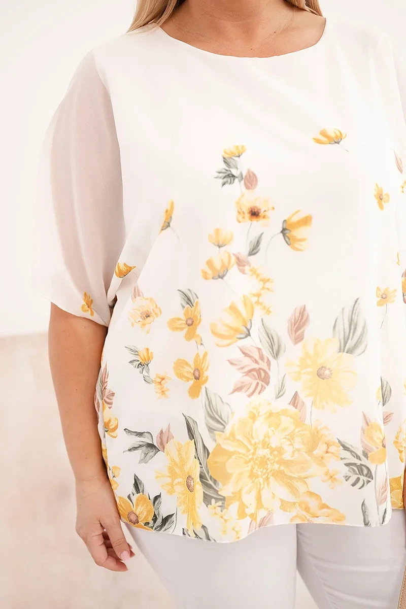 Dámská halenka Plus Size s krátkým rukávem a květinovým potiskem žlutá