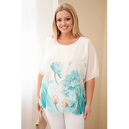 Dámská halenka Plus Size s květinovým potiskem a volným rukávem mentolová